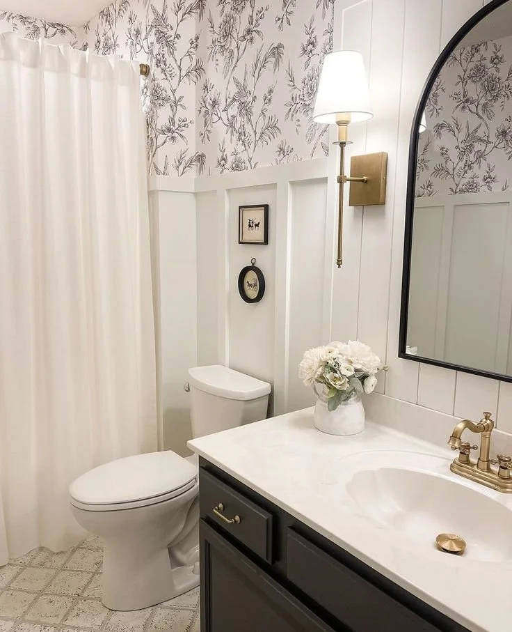 Wallpaper is the perfect way to introduce some colour and pattern to a bathroom scheme.