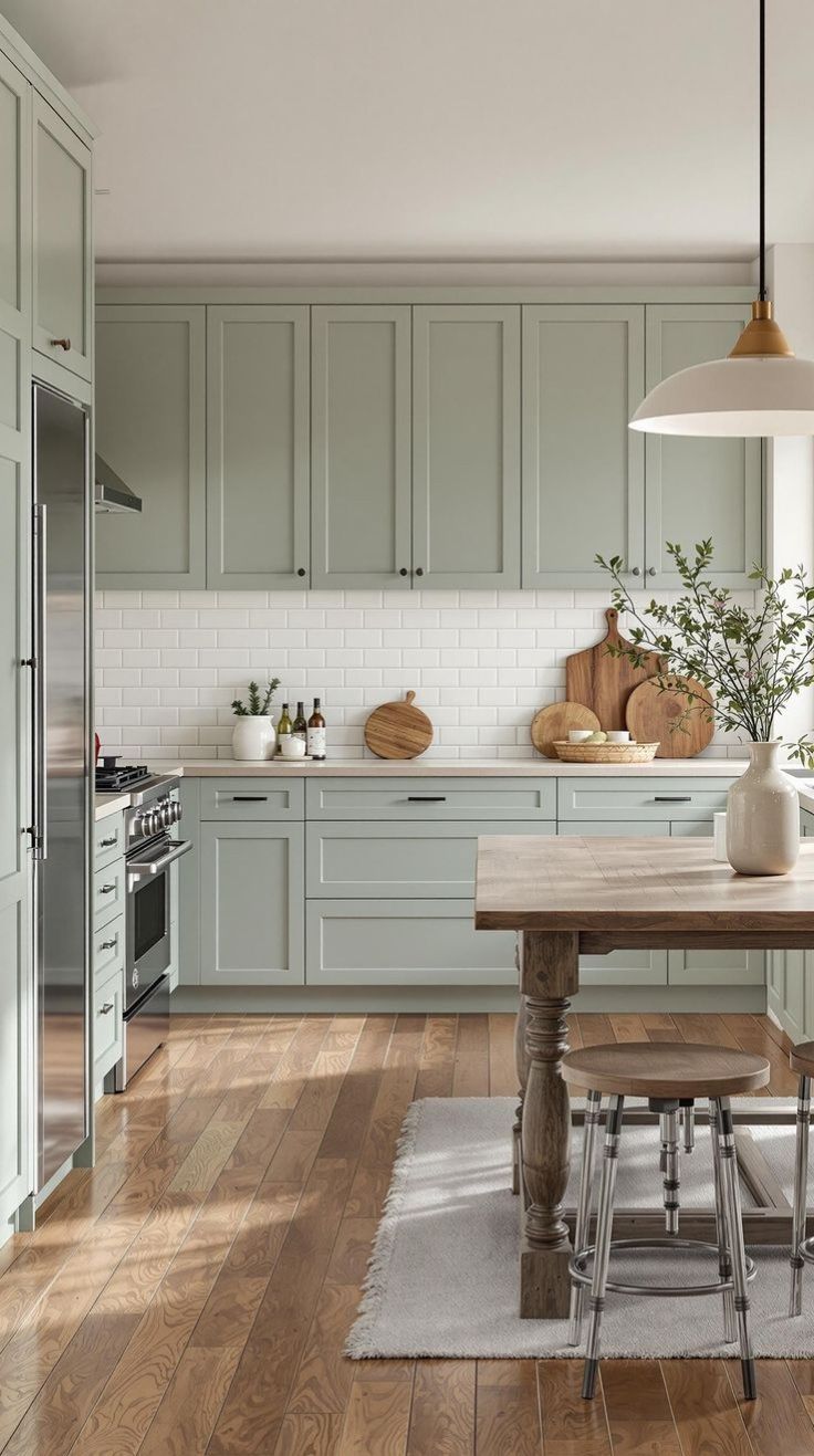 Dusty sage is perfect for kitchen joinery. It adds colour while still reading as neutral, especially when paired with: