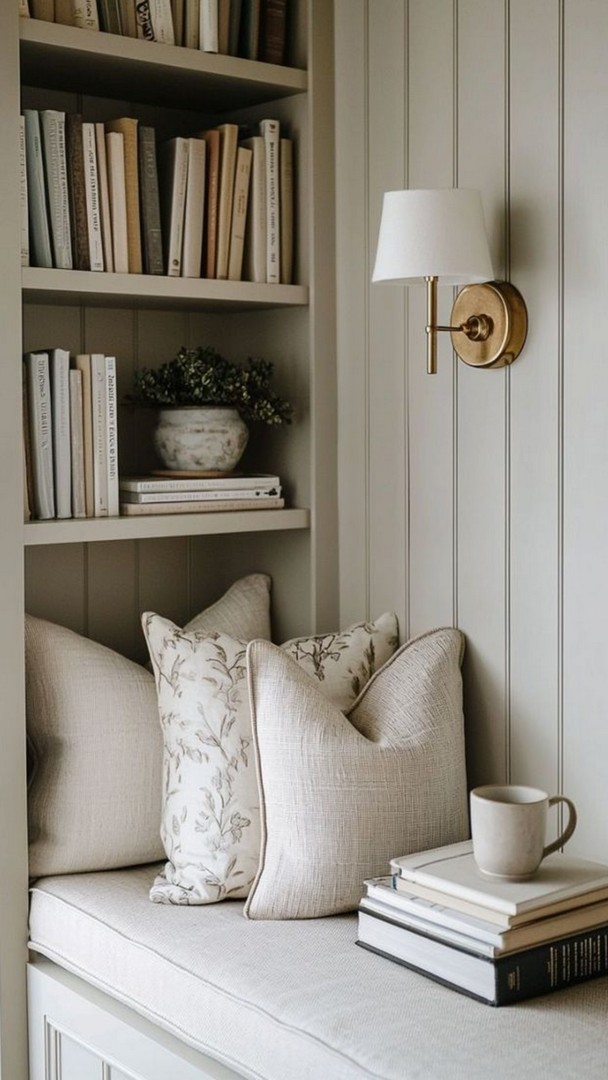 To keep muted greys from feeling flat, introduce just a thread of deeper contrast. A charcoal lamp base, a graphite throw, or even blackened bronze hardware will anchor the scheme and give the eye a place to rest. This darker punctuation prevents the room from drifting into monotony while preserving its tranquil mood. The result is a balanced composition: soft greys and whites doing the quiet work of creating harmony, with deeper notes adding structure and sophistication.
