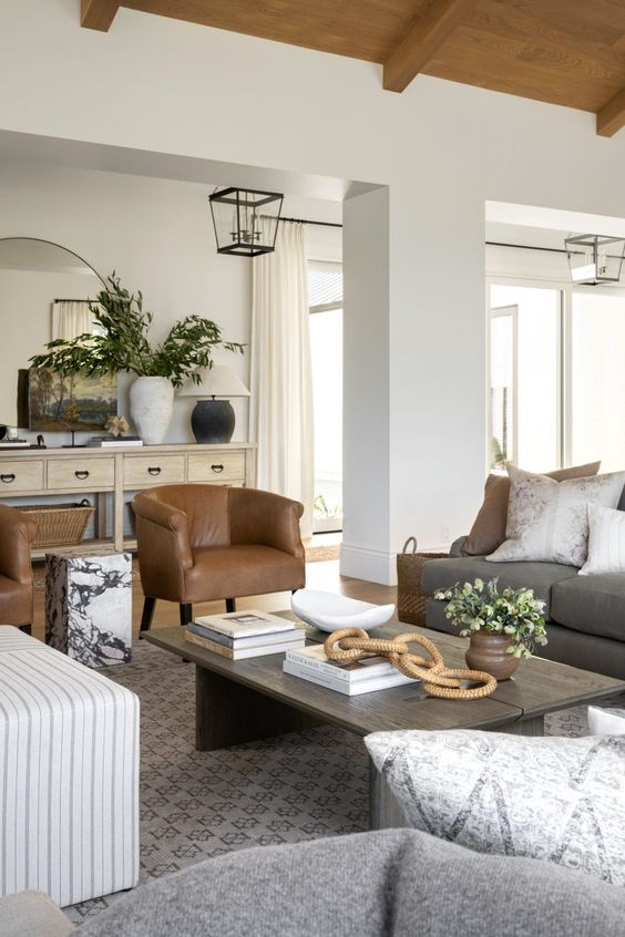 - I love the quirky marble side table and the lovely generous sized console table. Nothing here matches, but it works perfectly together. A classic Studio McGee living room that will always delight.