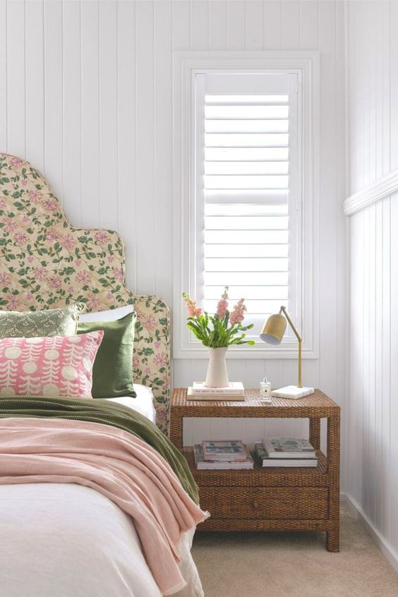 - There are some gorgeous bedrooms on the internet, but you don’t see many with colour. This room really took my eye as I love the layers of pink and green that have been introduced. I just think that this is such a pretty room.