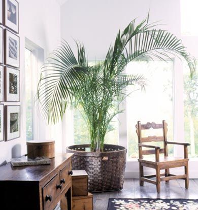 A statement indoor palm in an oversized basket is the perfect finishing touch for a British Colonial style room.