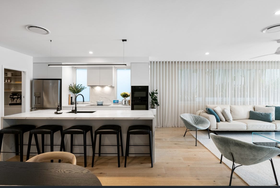 If bright white kitchen joinery isn’t to your taste, full-strength Dulux White Exchange is an excellent alternative. Shown here with Dulux White Exchange HALF on the walls, the result is elegant and understated. You only truly perceive the depth in the cabinetry when it is paired with a crisper white; otherwise, it simply reads as a beautiful white kitchen. It is this subtle depth that gives the space its quiet sophistication.