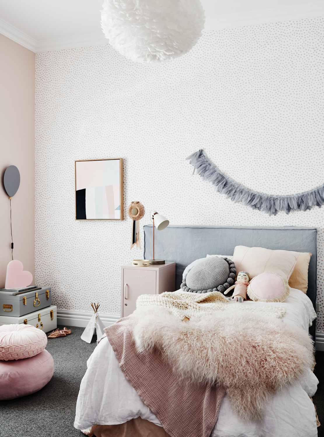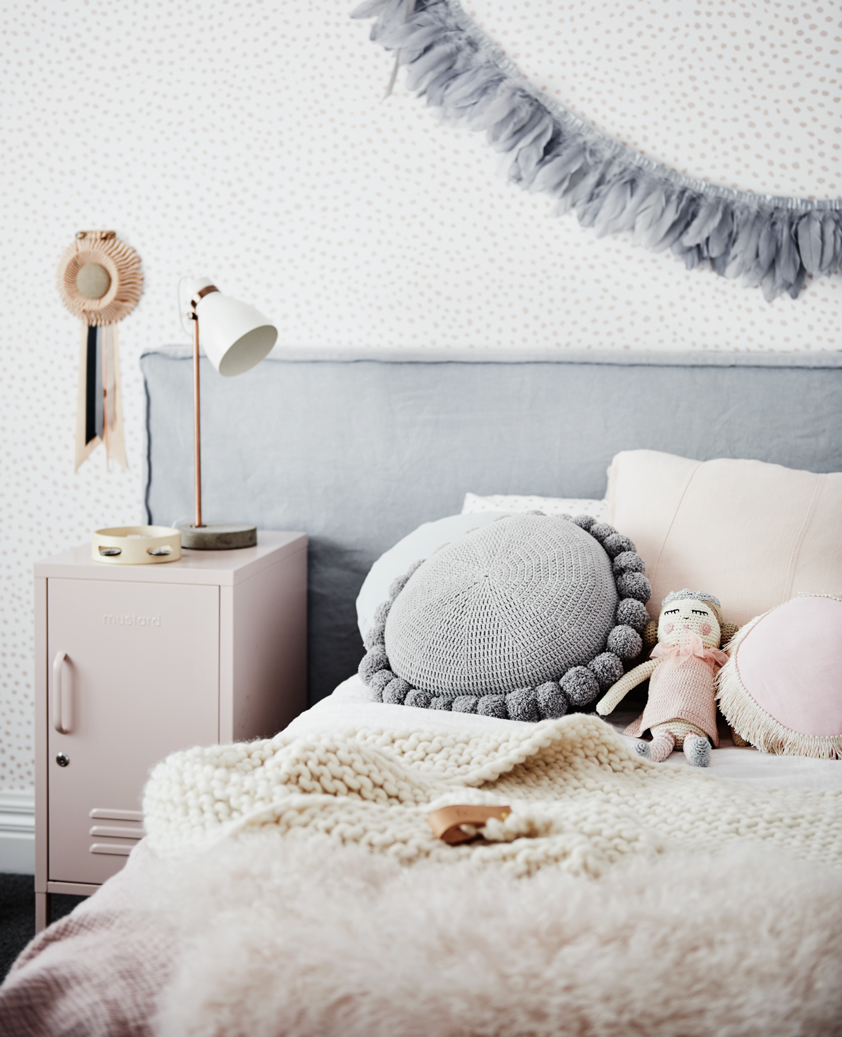 Dulux Mornington Half has been used in Annabel's room. This is a lovely soft pink that isn't too bright or sugary and works perfectly with soft grey and white tones.