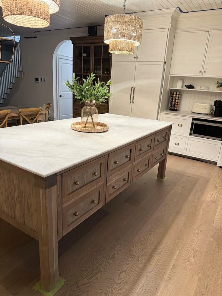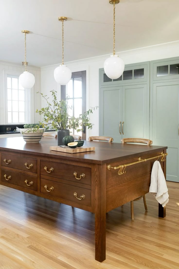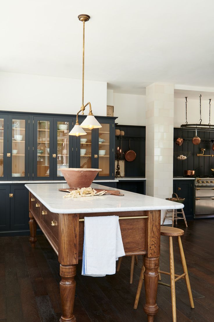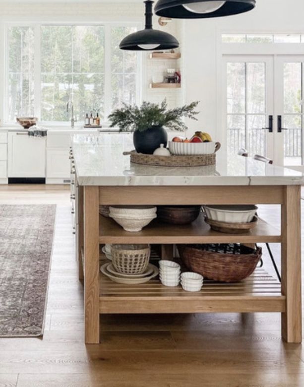 Imagine a large timber farmhouse table, then add drawers for storage, but don’t take them to the ground, add a marble benchtop and you have a classic kitchen island table. You still get the storage that you would have in a kitchen island as we know it, but without the sleek design. This can be a drawback, but in fact the appeal is in this piece of furniture. That’s because it really is a gorgeous statement piece rather than the classic joinery that you would expect in a kitchen.
