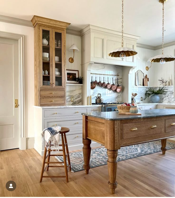 If you love this idea, but just feel you can’t entirely give up your traditional island bench, you can design an island that has the look of the table, but more of the functionality of a fitted island bench. The one below is a perfect example which I think looks fabulous.